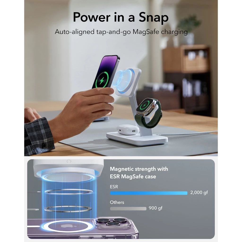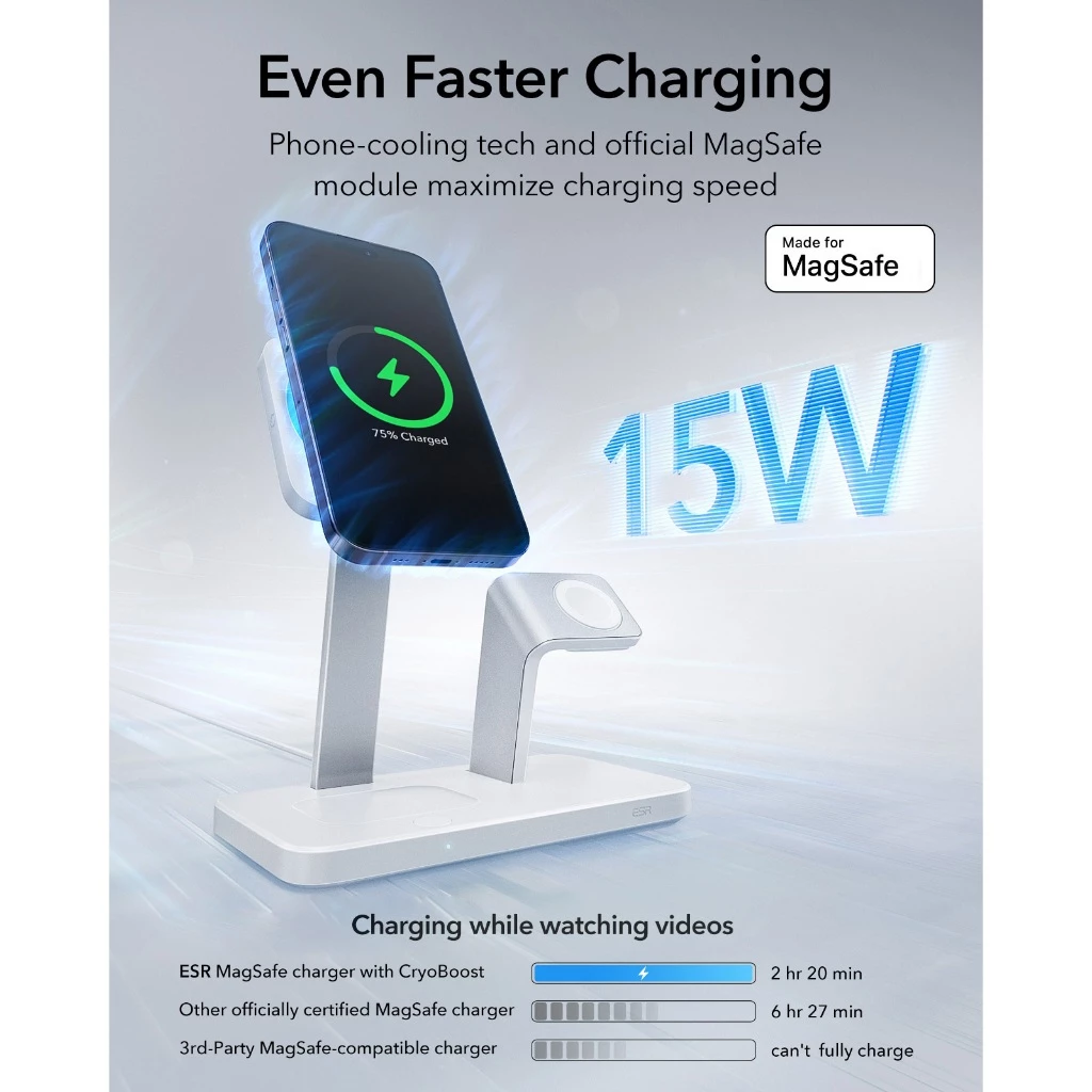 [HaloLock][CryoBoost][25W]ESR Bộ Sạc Không Dây 3 Trong 1 25W Hỗ Trợ MagSafe + CryoBoost, Màu Trắng Bắc Cực