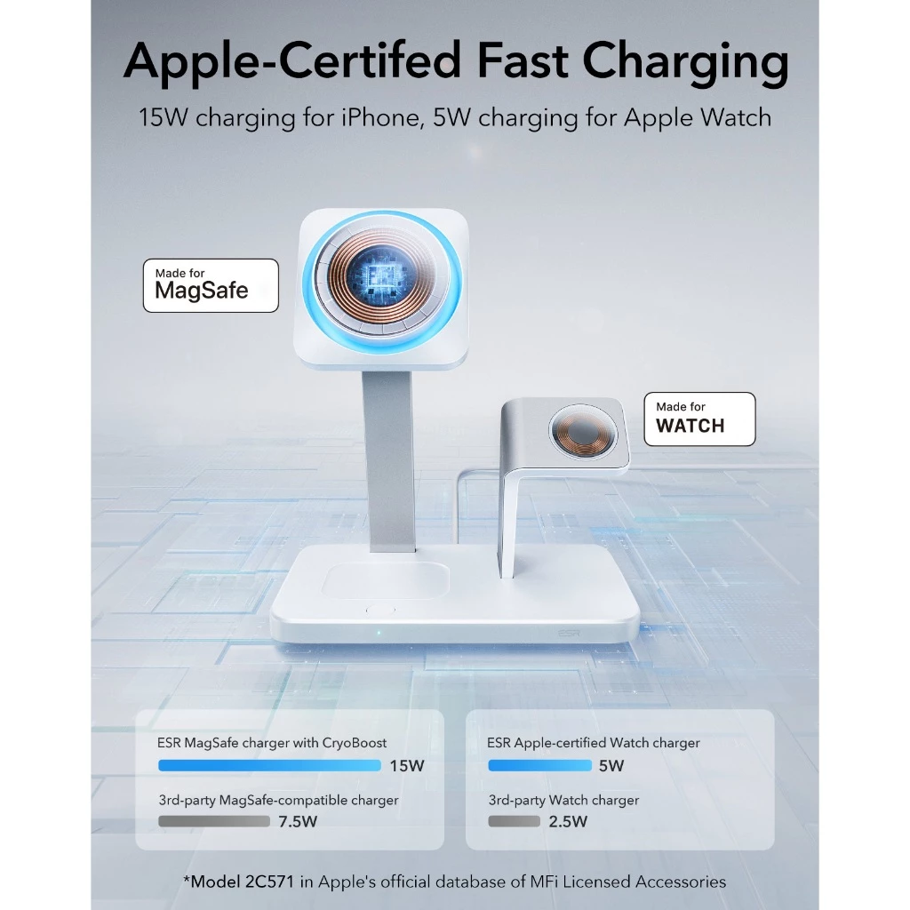 Đế sạc không dây ESR 3-in-1 25W Magsafe + Cryoboost – 2C571 màu trắng