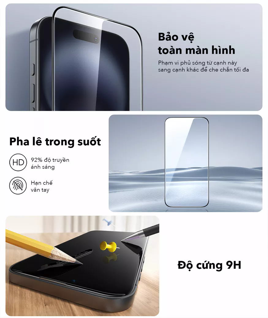 Độ cứng 9H chống trầy xước 10,000 lần với viền dày chỉ 0.7mm