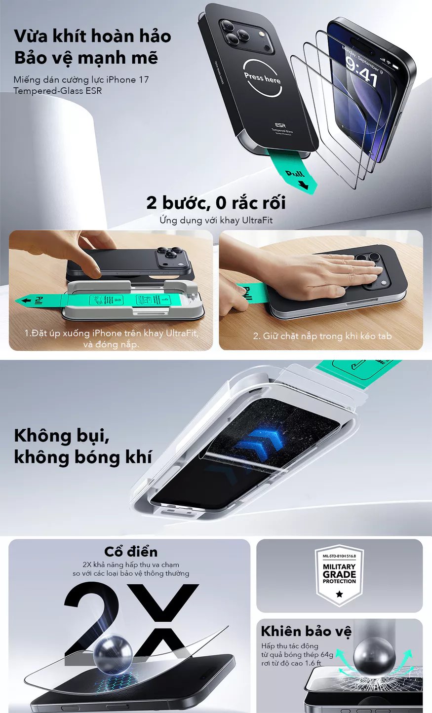 Miếng dán cường lực ESR Tempered-Glass cho iP 17 1D878 loại 1 miếng